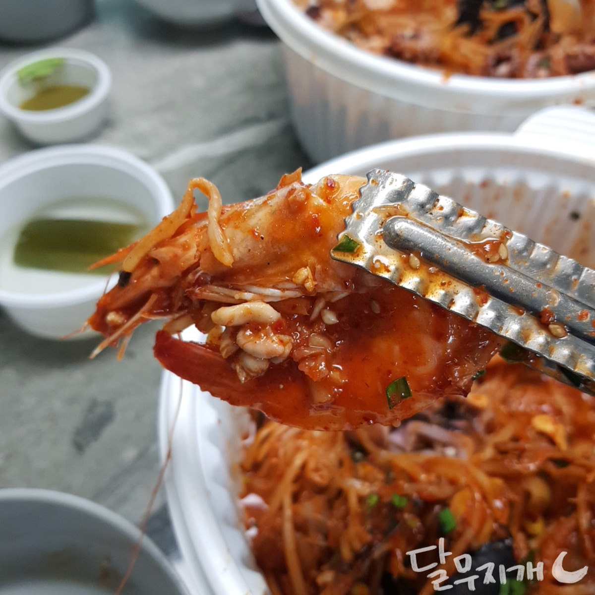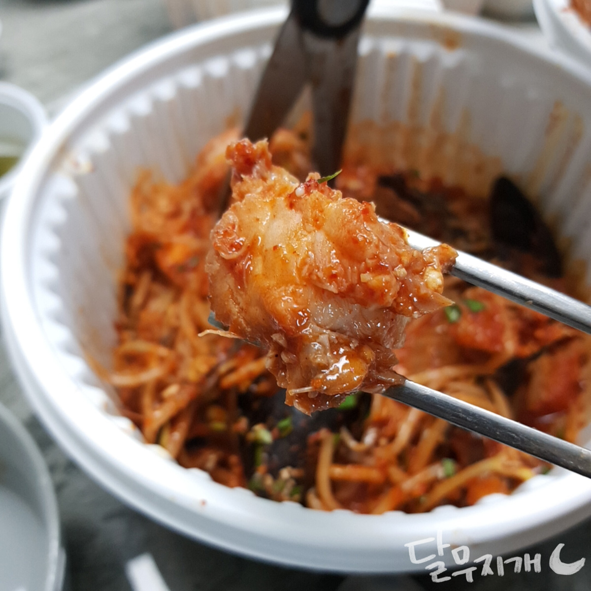 새우와 꽃게도 너무 맛있고 좋아하라 하는 해물! 싫어하는 해물이 뭐냐고 물으면 대답하기 힘들 정도로 난 너무 해물을 좋아하는 것 같다. 꽃게는 한 마리를 2등분해서 들어있었다. 새우는 몇 마리인지는 모르지만 난 몇 마리 까먹었음.