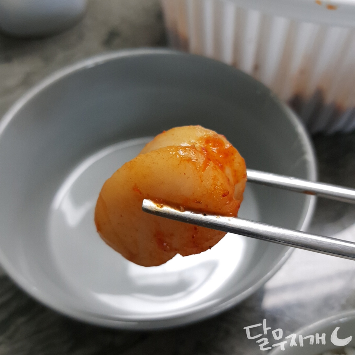 흰색 관자가 손짓을 하길래 제일 먼저 집어 먹었다. 부드럽고 맛있어! 해물찜에 들어있는 해물들이 전체적으로 적당히 잘 익어 있어서 부드럽고 맛있었다. 진짜 못하는 집에서 오래 익히면 질기고 맛없을 때도 있는데, 그렇지 않았다.